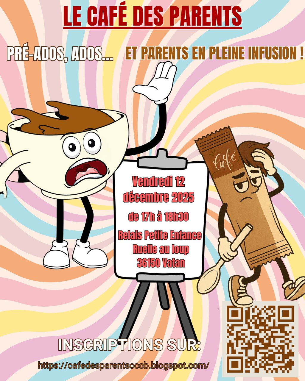 👉 Ce Café des Parents est l’occasion d’échanger entre adultes sur ce que l’on vit au quotidien avec nos jeunes, de partager des expériences et de trouver ensemble un peu de recul (et de bonne humeur 😉).